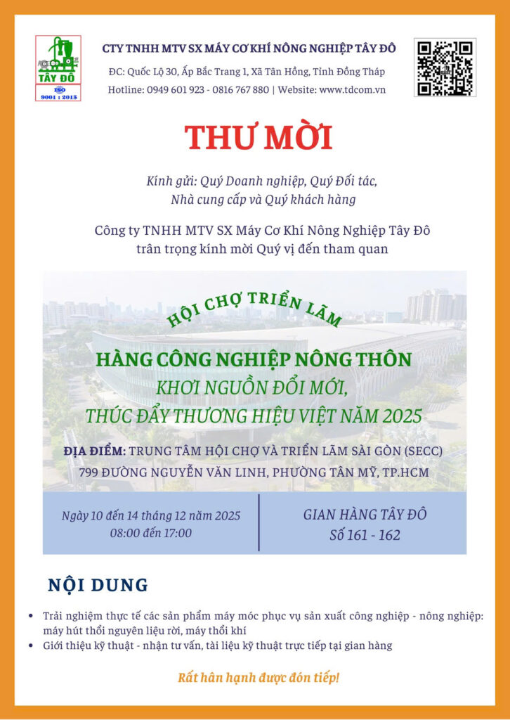 Công ty TNHH MTV Sản xuất Máy Cơ khí Nông nghiệp Tây Đô tham gia Hội chợ Công nghiệp Nông thôn 2025 – sự kiện xúc tiến thương mại quy mô lớn dành cho các sản phẩm công nghiệp nông thôn tiêu biểu trên toàn quốc.